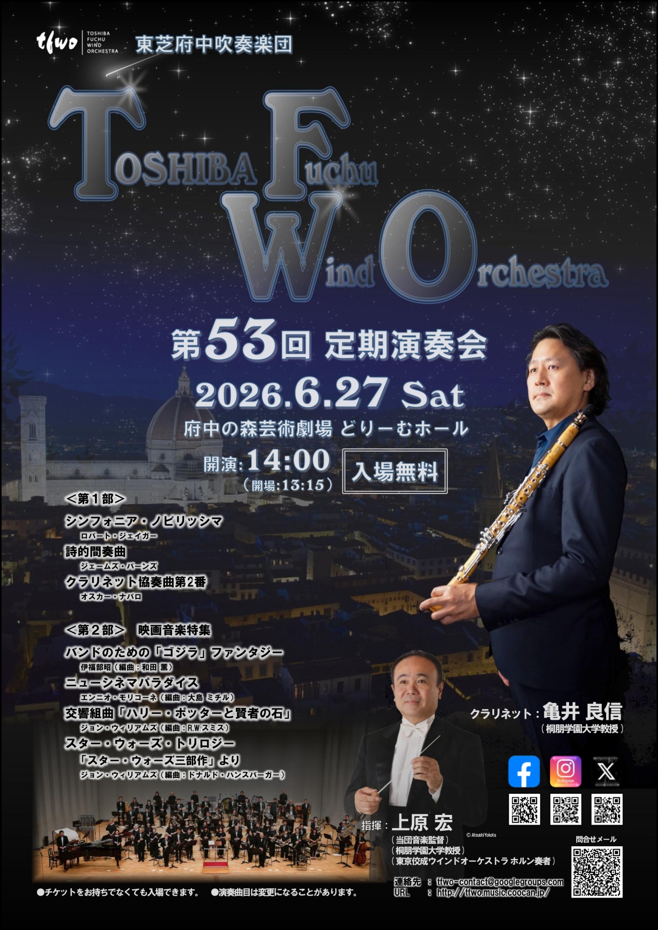 6/27(土)東芝府中吹奏楽団 第53回定期演奏会 出演情報を更新しました。
